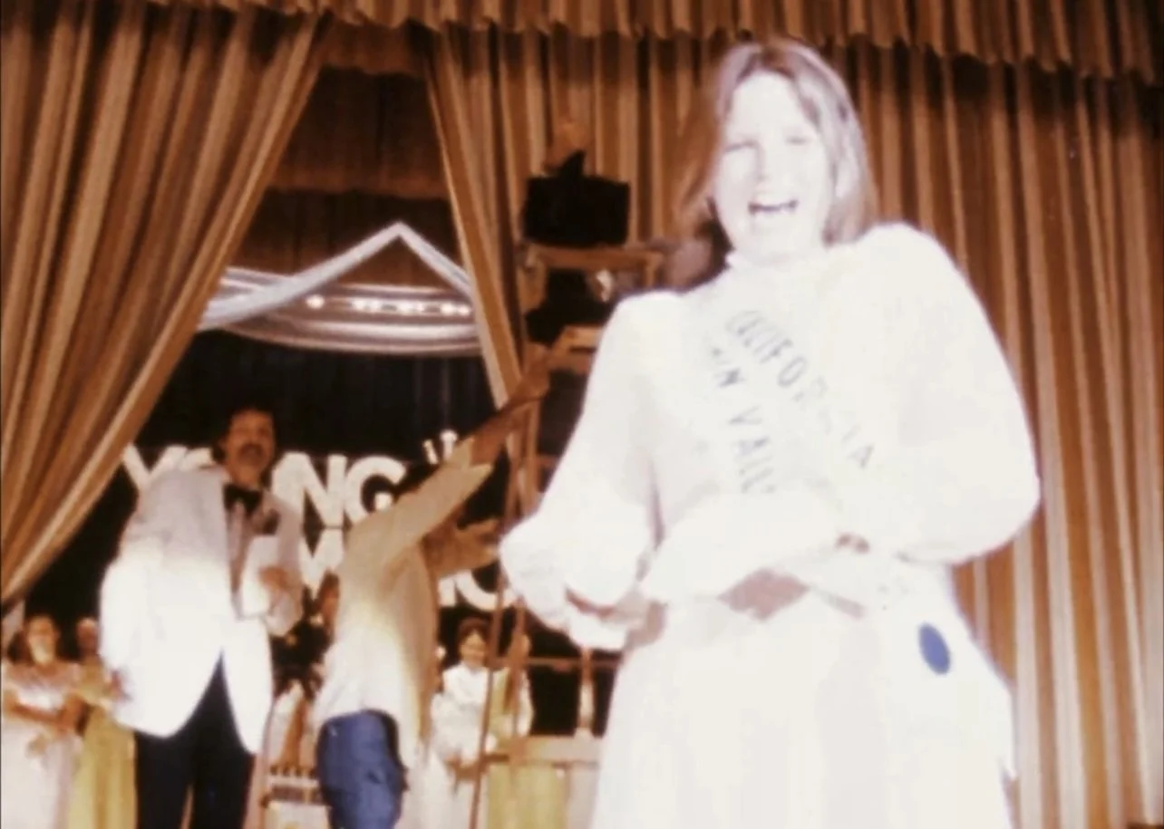 Early in RUDE AWAKENING, Sonbert includes footage he shot of Fountain Valley’s Young American Miss receiving a bouquet of flowers on stage (denoted on the above shot list as “Santa Rosa beauty getting flowers”). It was recently discovered that this footage was actually taken from the set of the 1975 feature film SMILE, which satirizes beauty pageants. The film stars Bruce Dern and Barbara Feldon and was directed by Michael Ritchie.